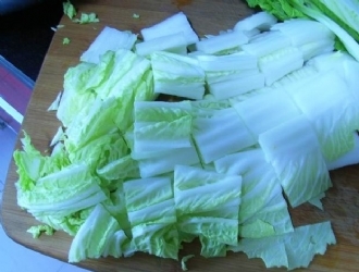等看见丝丝都发软了就可以放用盐腌好并挤了盐水的白菜再次搅拌。
