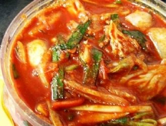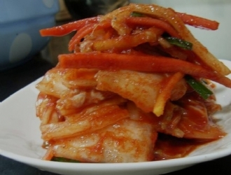 这里来一个特写,这就是搅拌好了的辣白菜了,是不是很有食欲呀?;-)